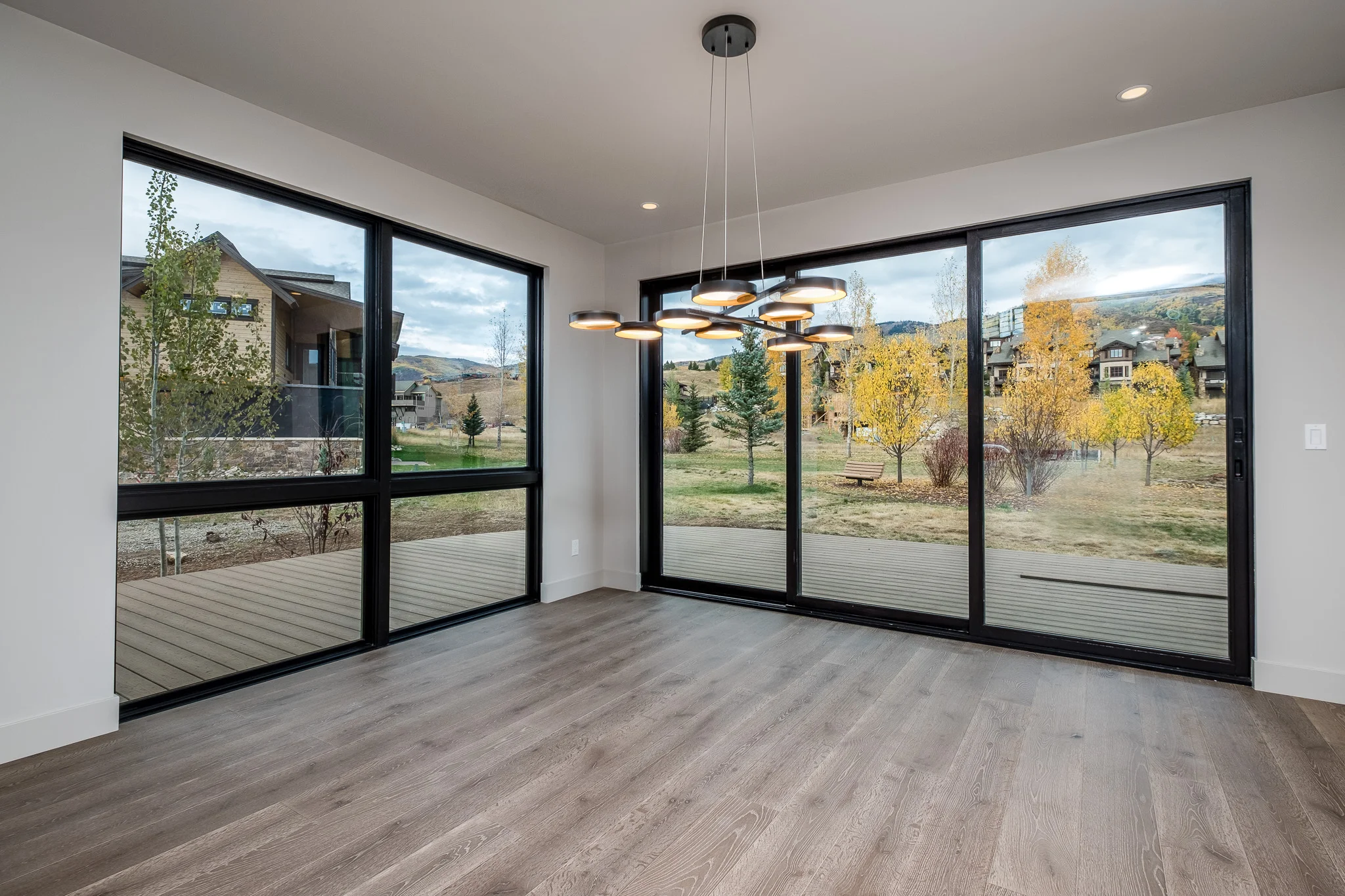Picture windows capture gondola views from the master bedroom, dining and living room as well as one upper bedroom. Two additional bedrooms have breathtaking South Valley and Emerald Mountain views. All of the main floor and upper bedrooms have vaulted ceilings with custom steel-beam detail.